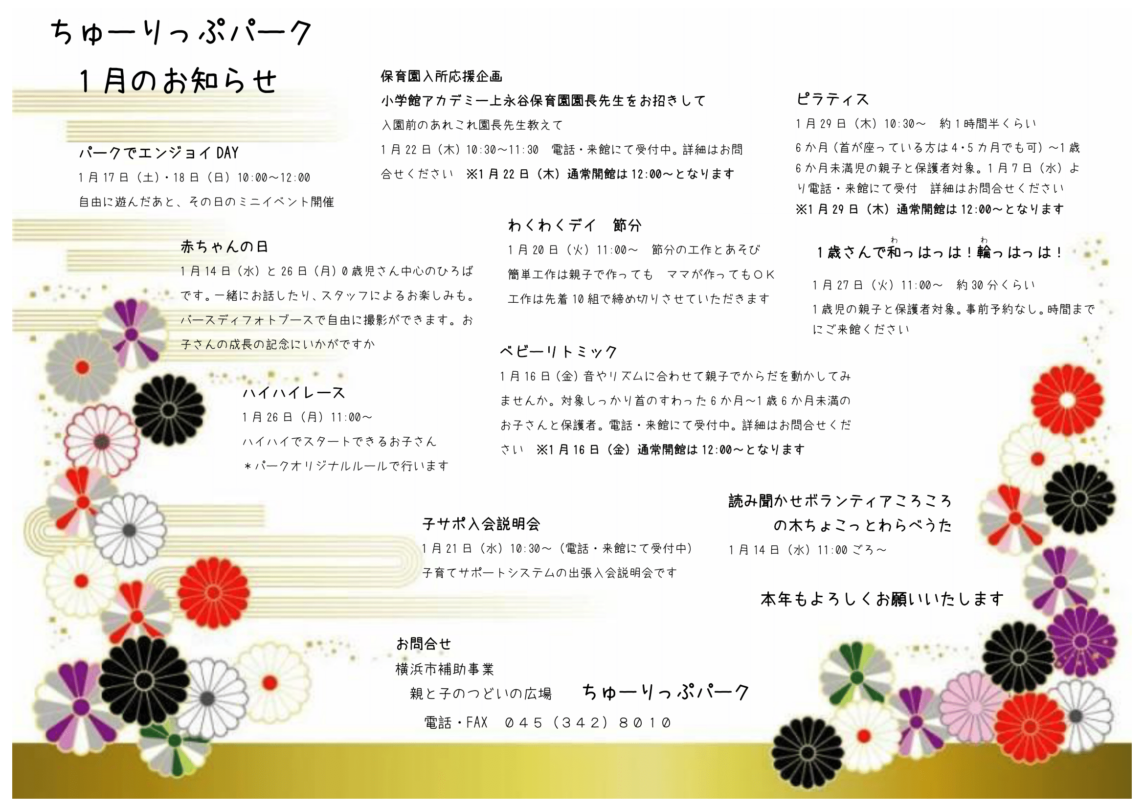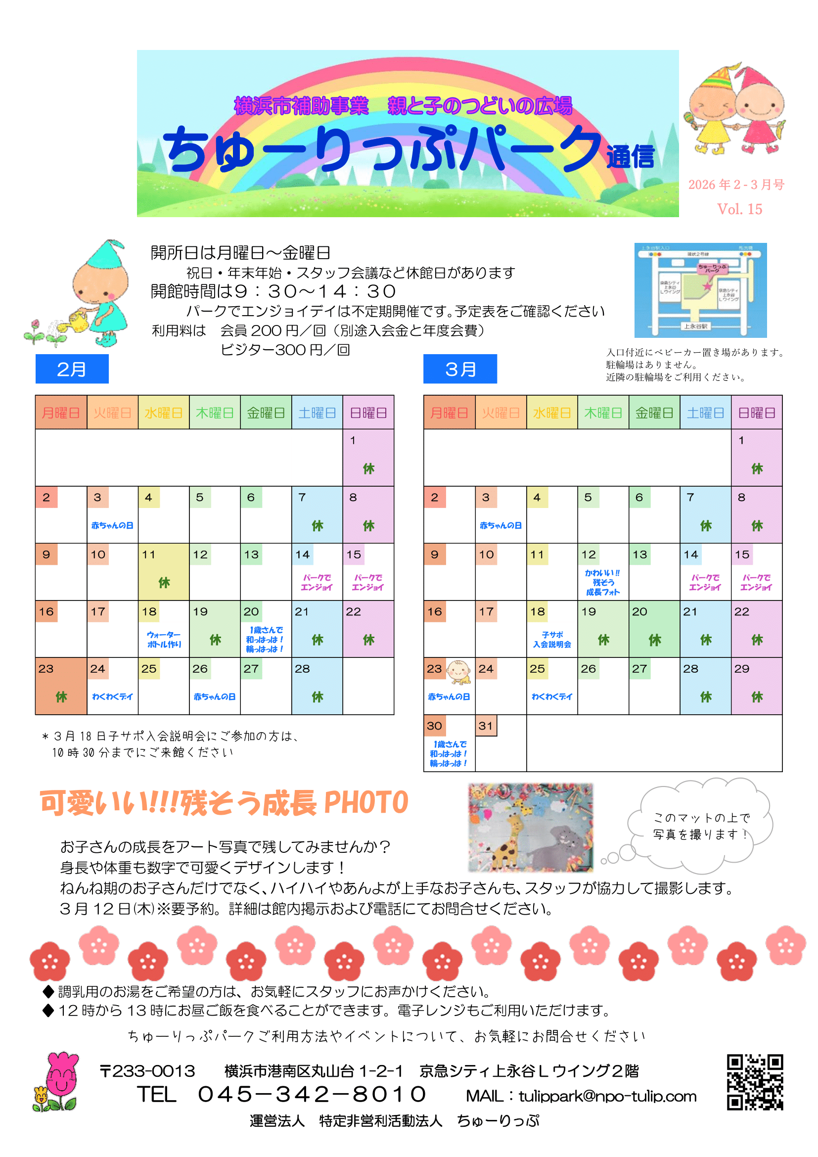 「ちゅーりっぷパーク」は 横浜市補助事業「親と子のつどいの広場」として特定非営活動法人ちゅーりっぷが運営をしています。